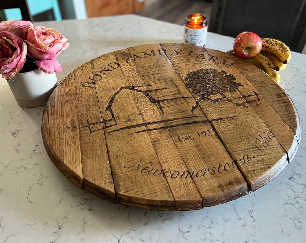 Bourbon Barrel Sign with Custom, Laser Engraved Design